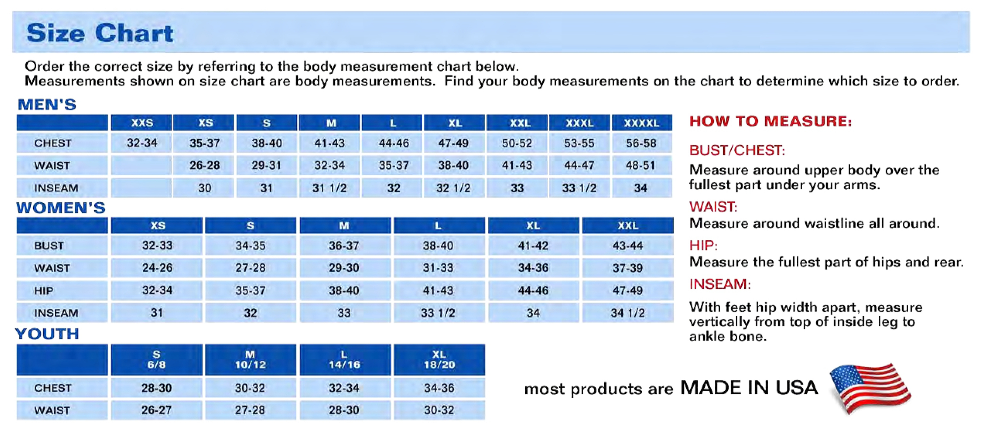 | Chest | 34-35 | 36-37 | 38-40 | 41-42 | 43-44 |