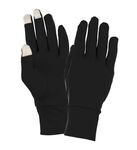 Brushed back 90% polyester/10% spandex knit with metallic dobby tech tips * Soft brushed back poly/spandex knit offers 4-way stretch * Conductive middle, pointer and thumb fingertips provide convenient touch screen capability * Interior hand warmer pocket at back of hand keeps hand warmers secure and hands warm * Snug, double layer cuff keeps out the cold * Finger gussets provide snug fit for increased articulation